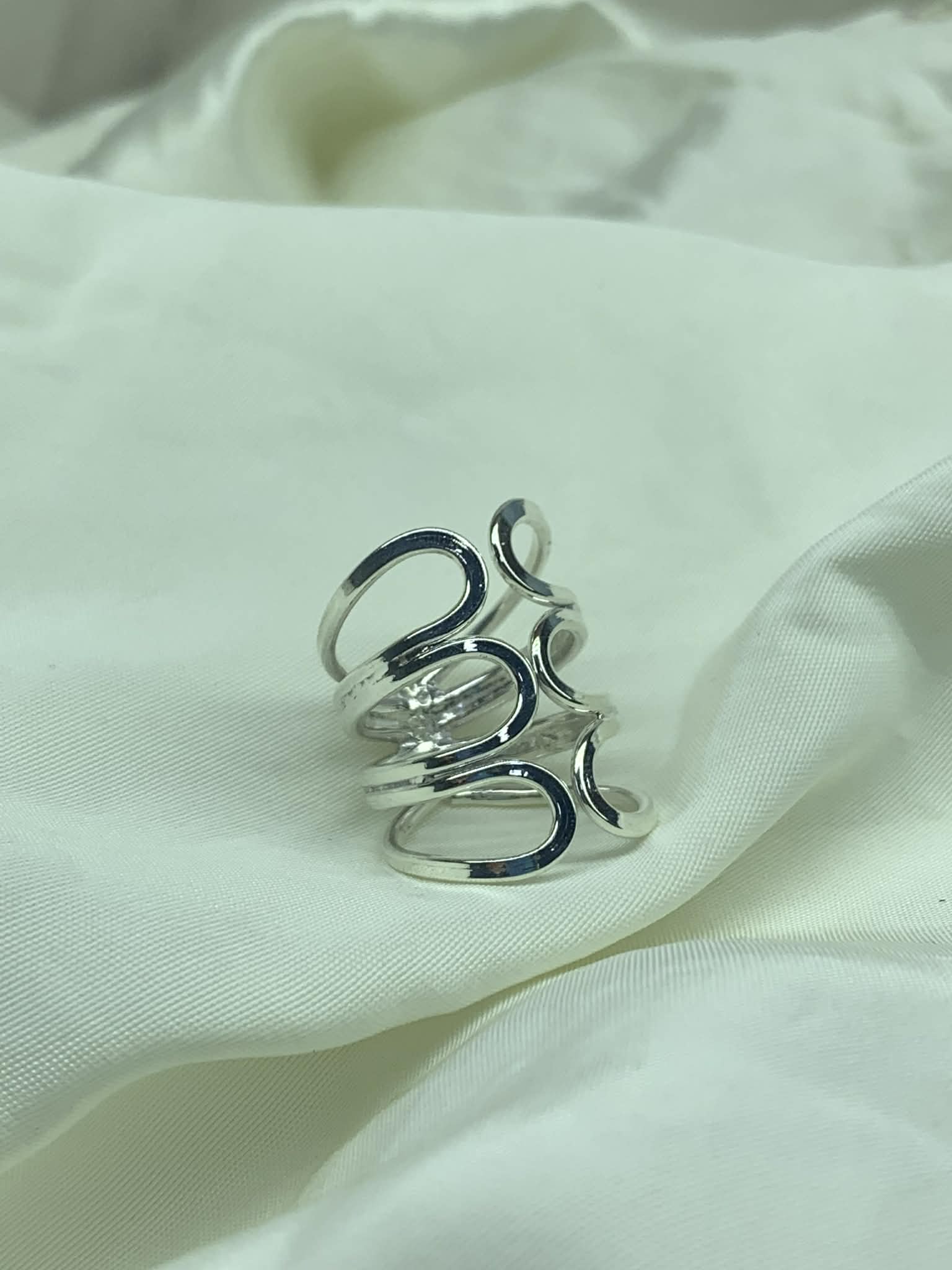 ANILLO TRIPLE ONDA HUECA, ACABADO EN PLATA FINA.925